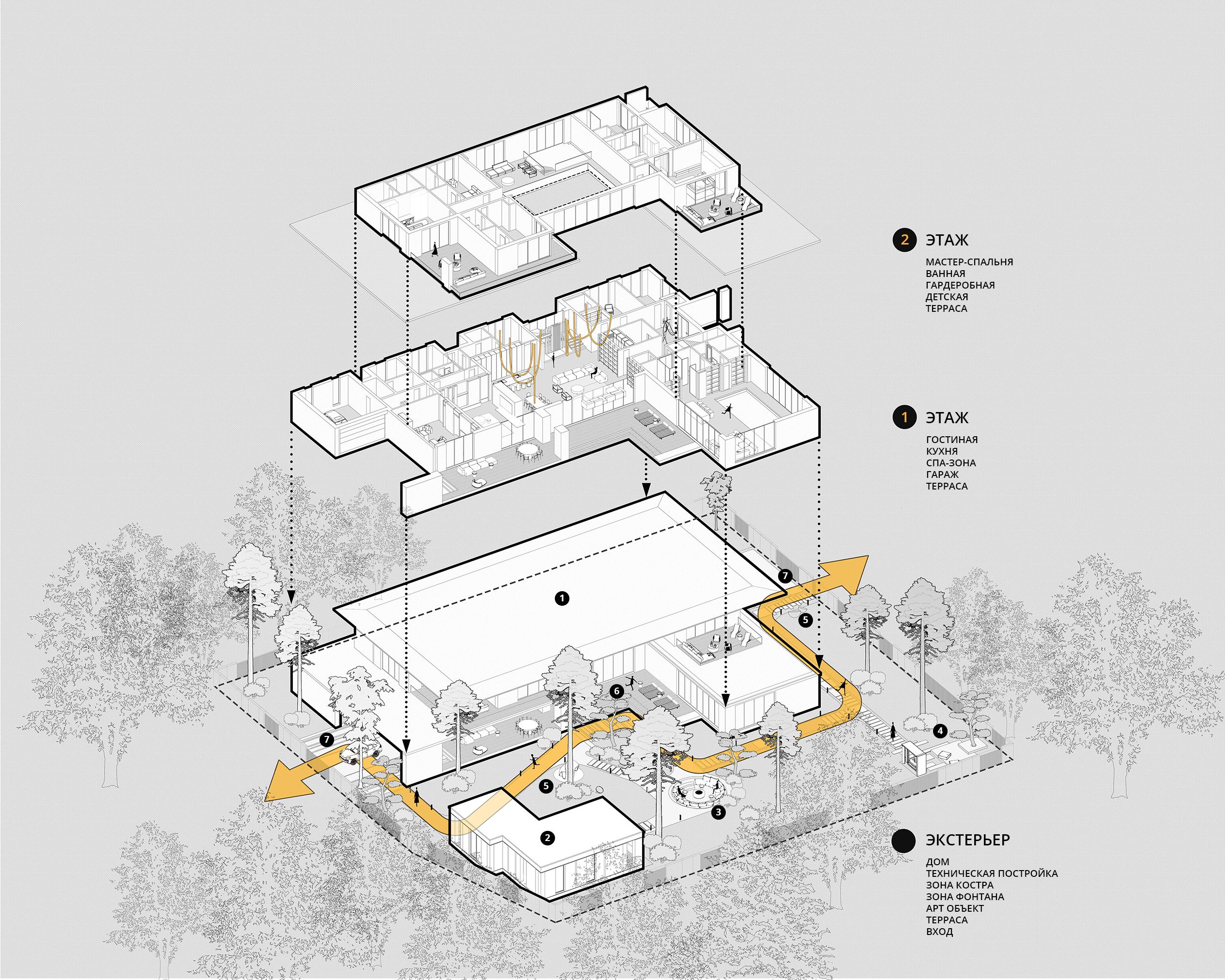 If you ask what kind of interiors we like to work on the most, we will answer - on the interiors of large houses. Firstly, this is always a difficult ambitious task, and we love this kind of work. Secondly, there are usually many more opportunities. If the project of the house is developed in parallel with the interior, then it becomes possible to create an ideal layout. And the interior of the house involves the design of complex and interesting functional areas. For example, for this project we have developed a spa area with a swimming pool, hammam and cryosauna. We worked with such premises for the first time and it was a very exciting experience.