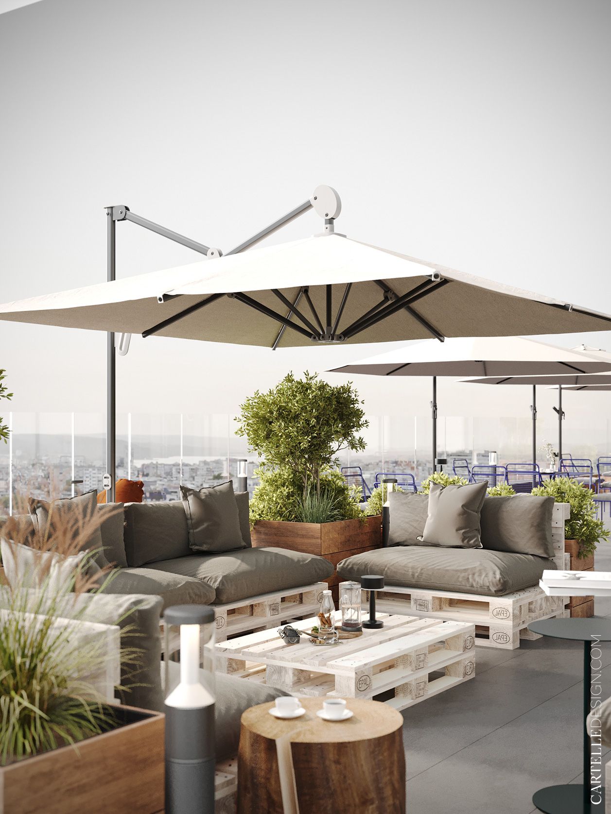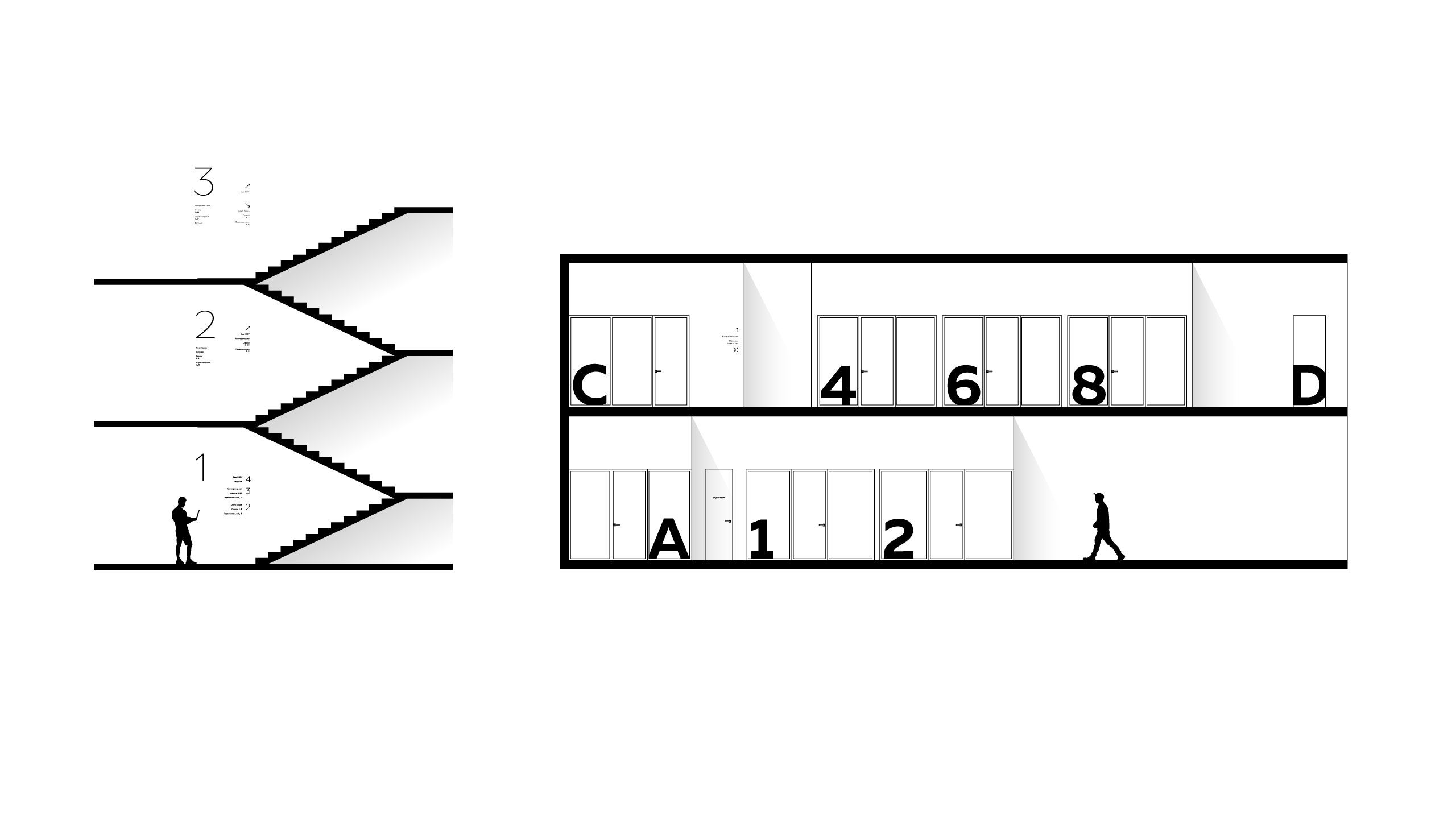 The coworking space is located in a four-story building and occupies the second, third and fourth floors. The main advantage of the room is the strip sectioning. On the second floor, in the brightest part of the room, we located a spacious open space, and along the perimeter there are several offices and meeting rooms. The third floor is occupied by small offices for 2-4 people and a conference room. The fourth floor is occupied by a coffee shop and a terrace where you can relax and work.
