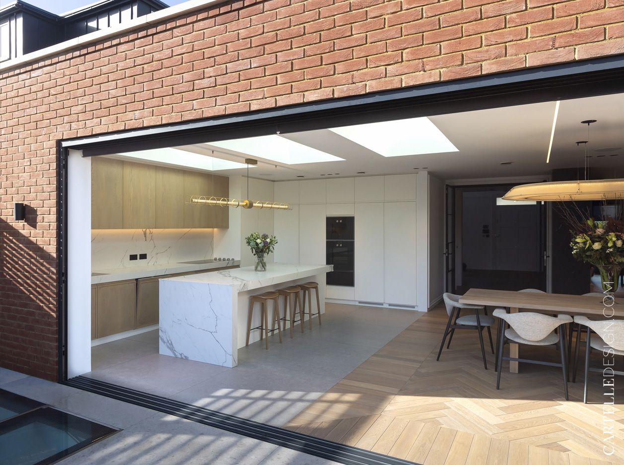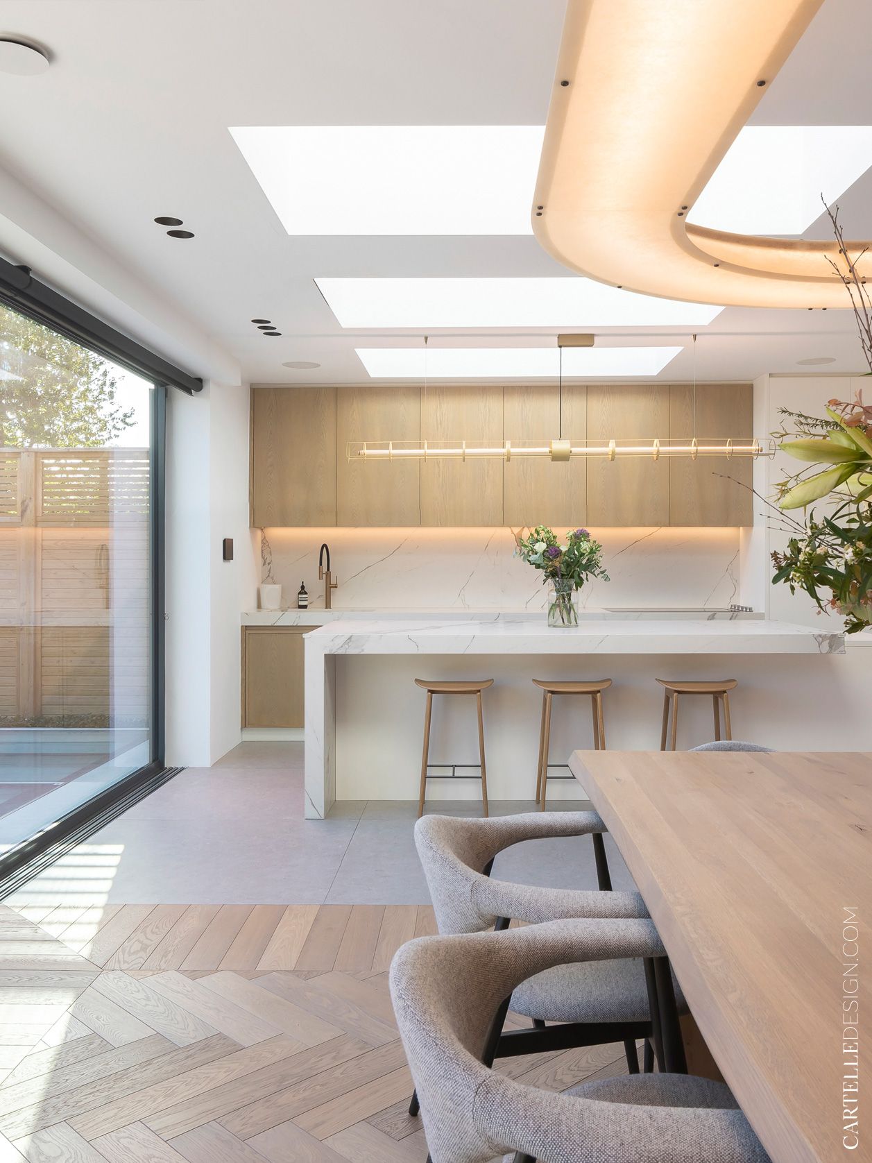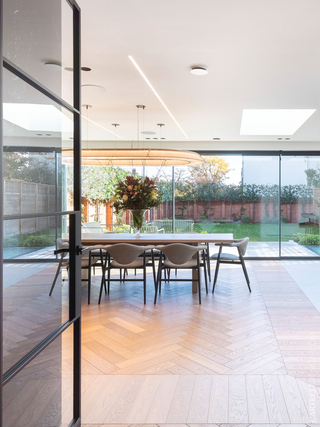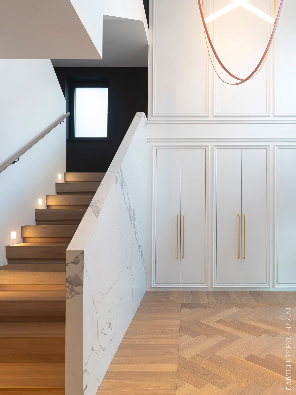 We were approached by a young family who were building their own house in London - a modern three-story building with a classic street-side façade. They saw the interior of their future home in a modern style with elements of the classics. We were faced with the task of creating a discreet interior that would not lose its relevance in a few years.