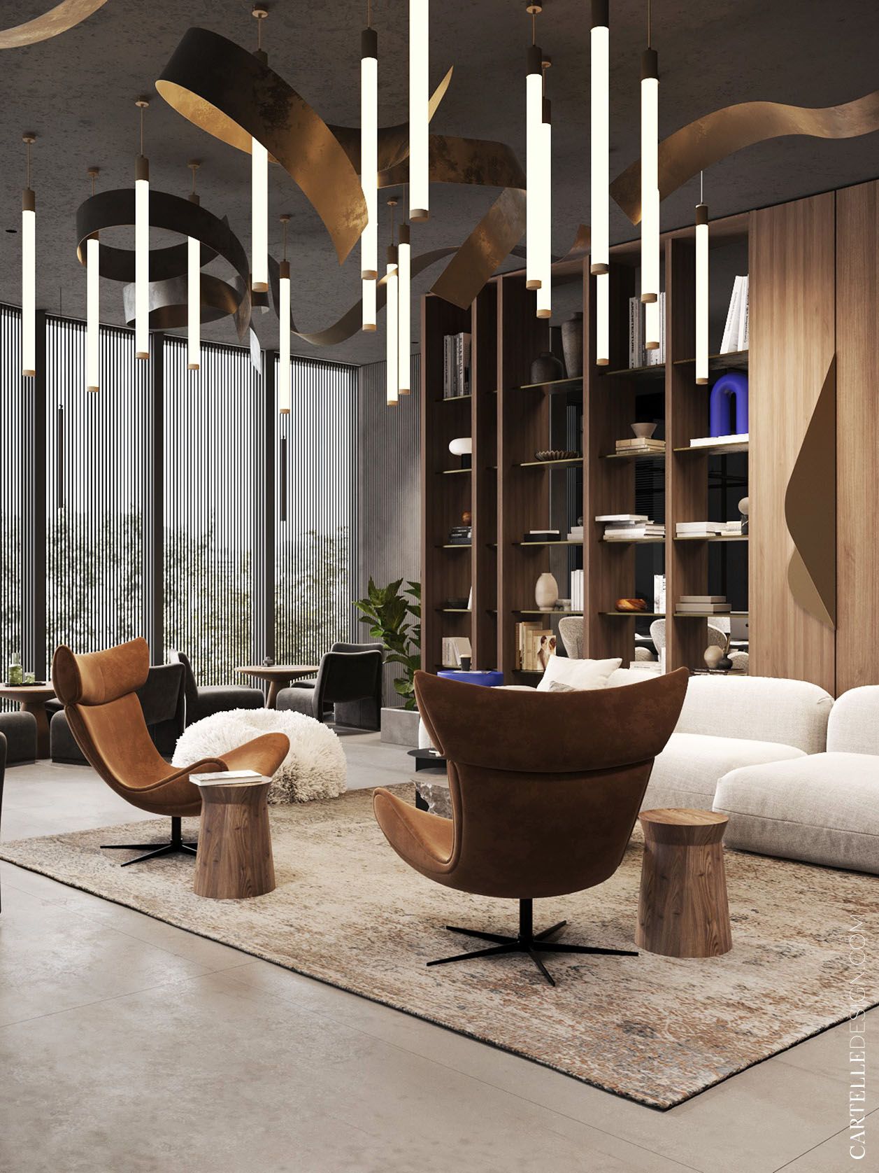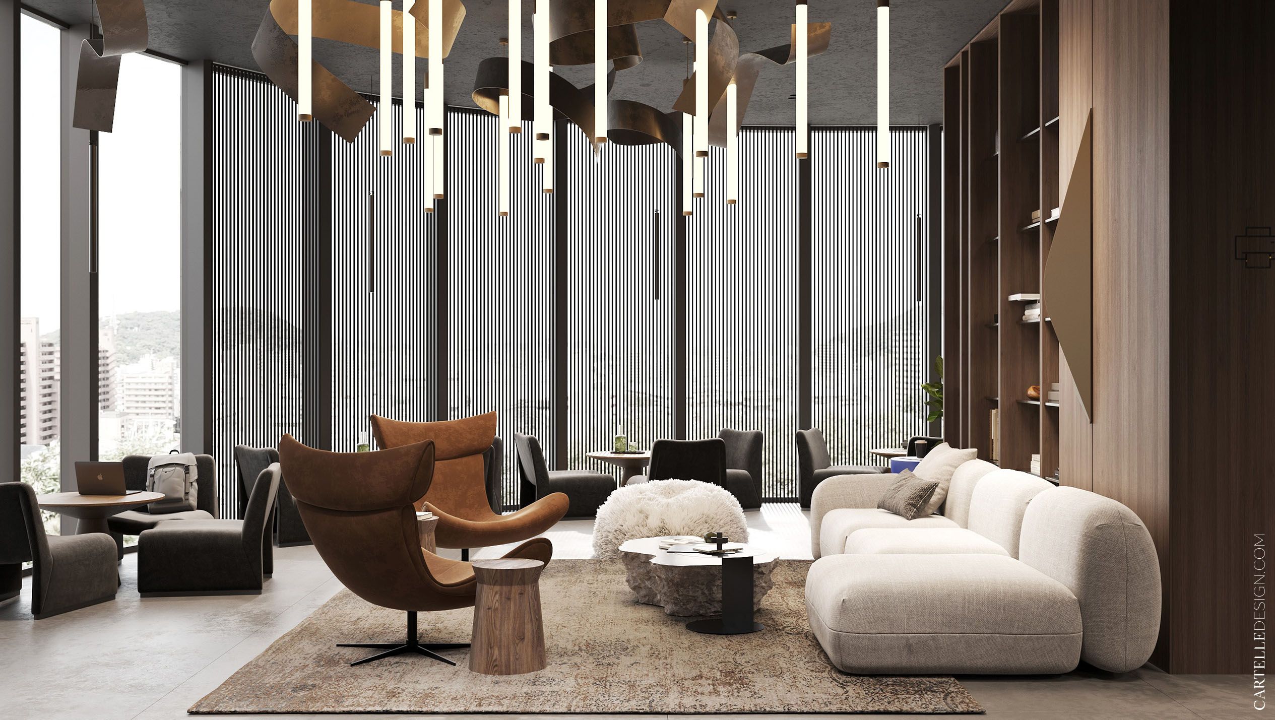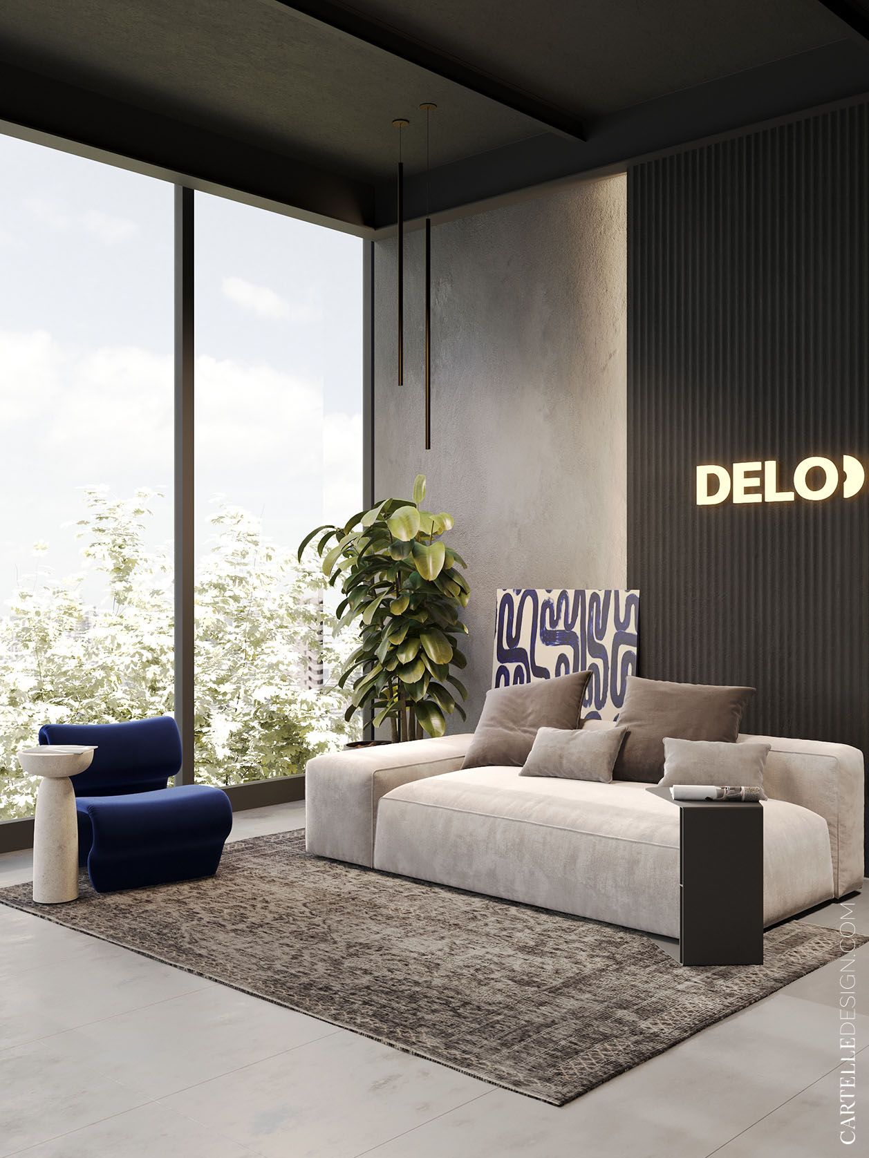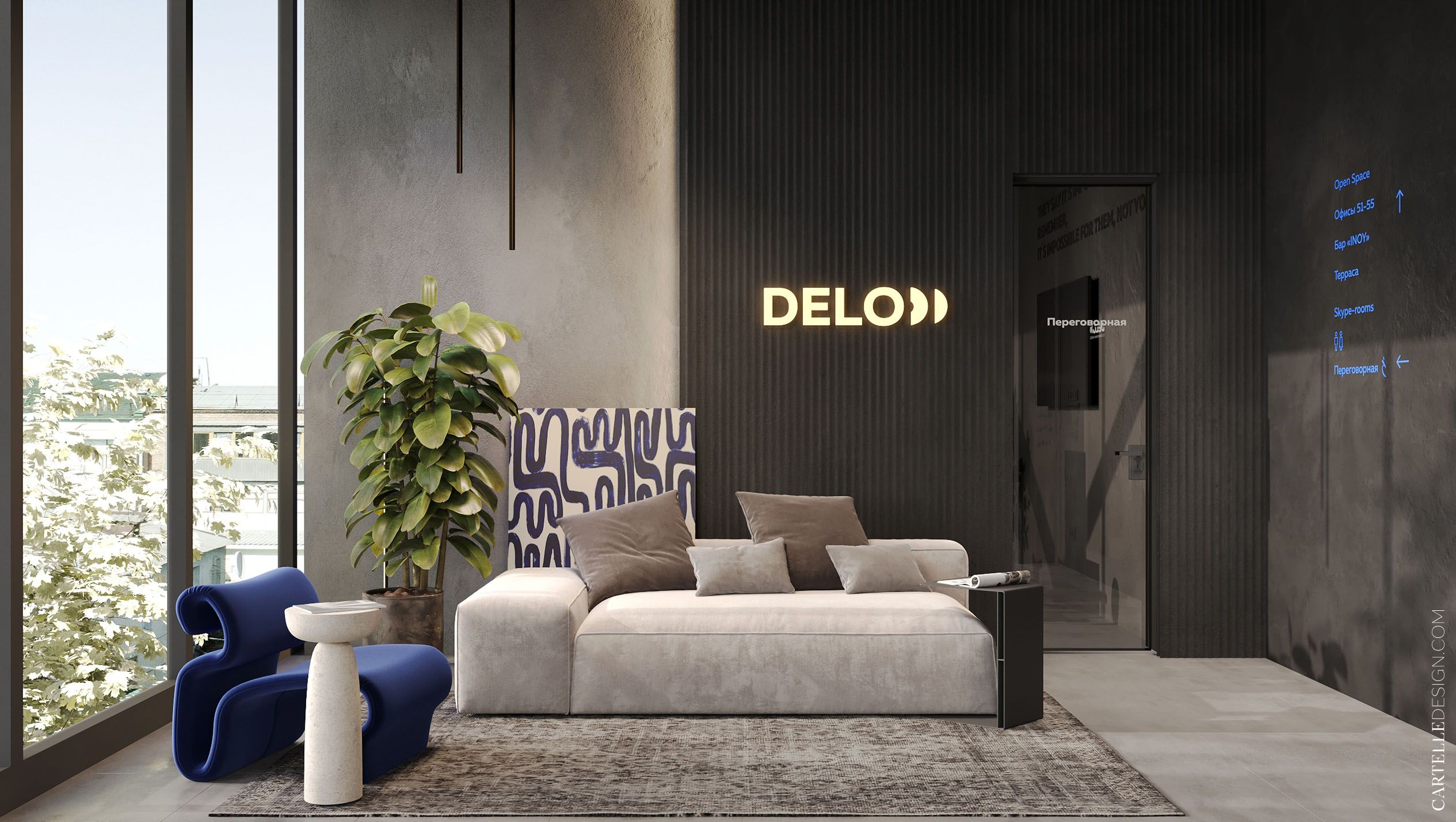 Несколько лет назад мы создавали интерьер для коворкинга Delo и гастробара Nomad. Они заняли 3 этажа старого советского здания. Пока мы работали над проектами, команда коворкинга решила задействовать и крышу помещения - открыть бар с большой террасой. Мы разработали концепцию нового интерьера. Самой главной деталью которого стала круглая барная стойка с большим светильником, состоящим из переплетенных металлических полос. На основе нашей концепции архитекторы разработали проект, и началось возведение конструкций на крыше здания. А мы приступили к закупкам. И начали с самого сложного элемента - светильника-гнезда. Его для нас изготовила студия, специализирующаяся на дизайнерских светильников. После нескольких месяцев проектирования, правок и согласований он отправился на производство. И в этот момент команда коворкинга решила отказаться от концепции бара и сделать на новом этаже продолжение коворкинга.