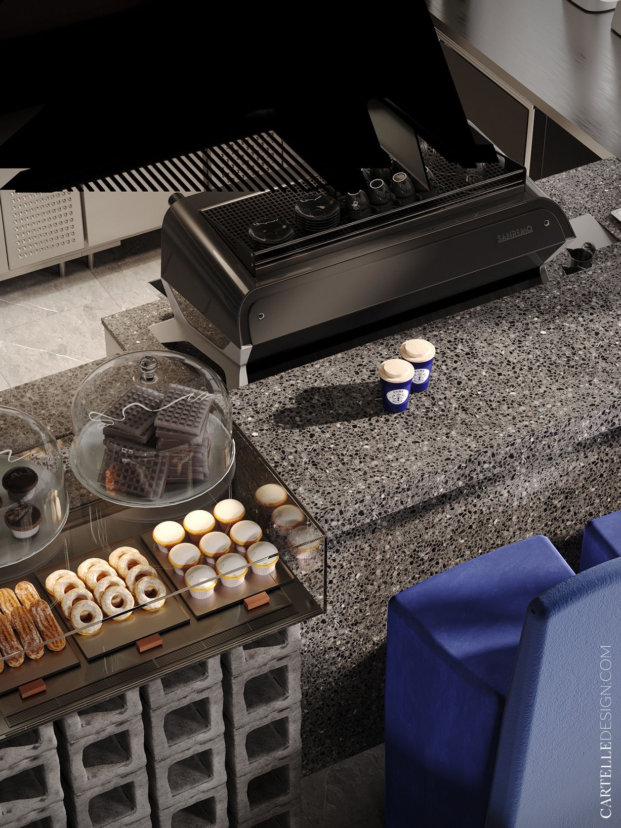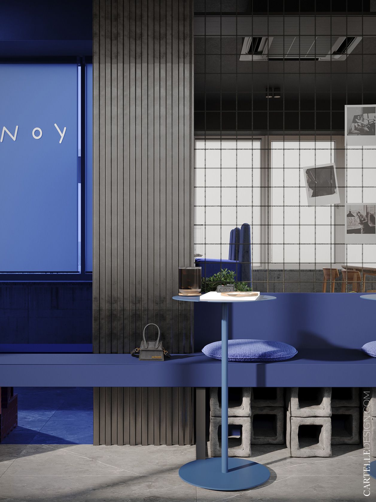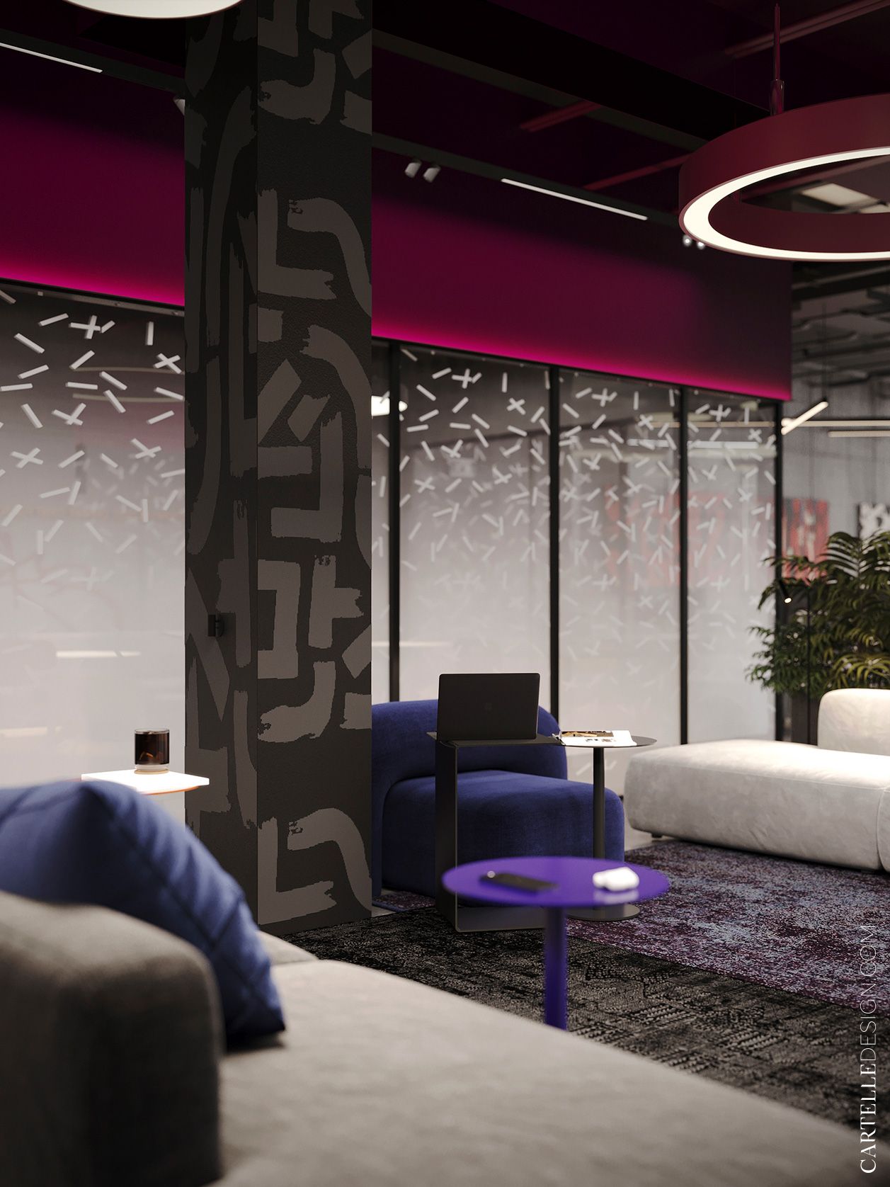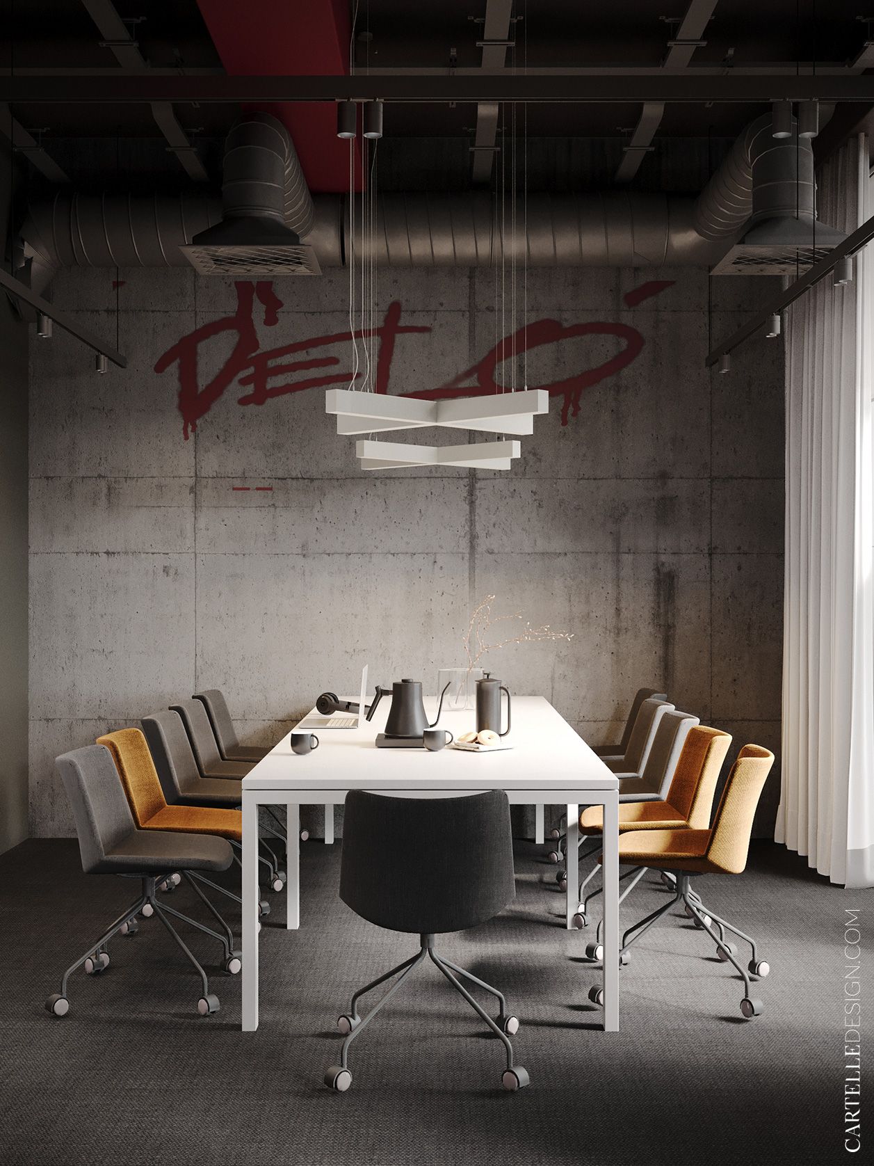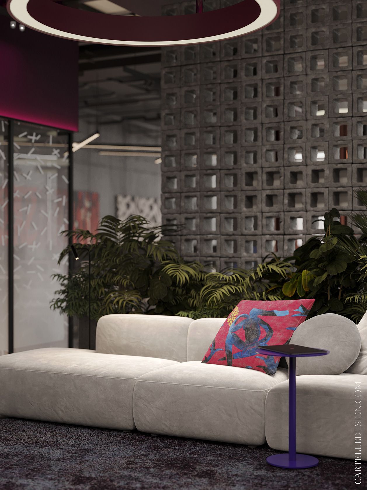 Второй филиал коворкинга DELO. Мы вдохновлялись эстетикой первого коворкинга, но старались не копировать проект. Здесь повторяются некоторые элементы - бетонные поверхности, простые геометрические формы, сочетание спокойной цветовой гаммы с акцентными цветами. Но за счет более насыщенных цветов и графических элементов интерьер получился менее строгим и более творческим.