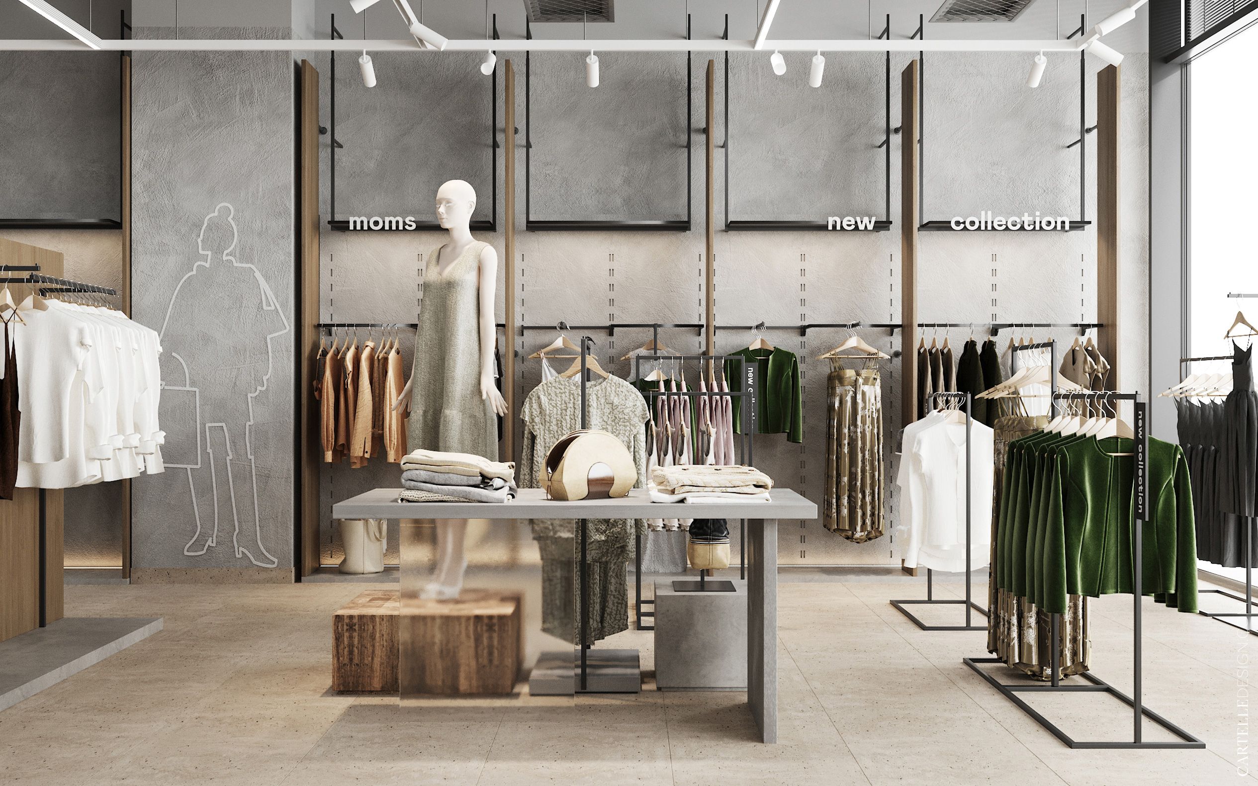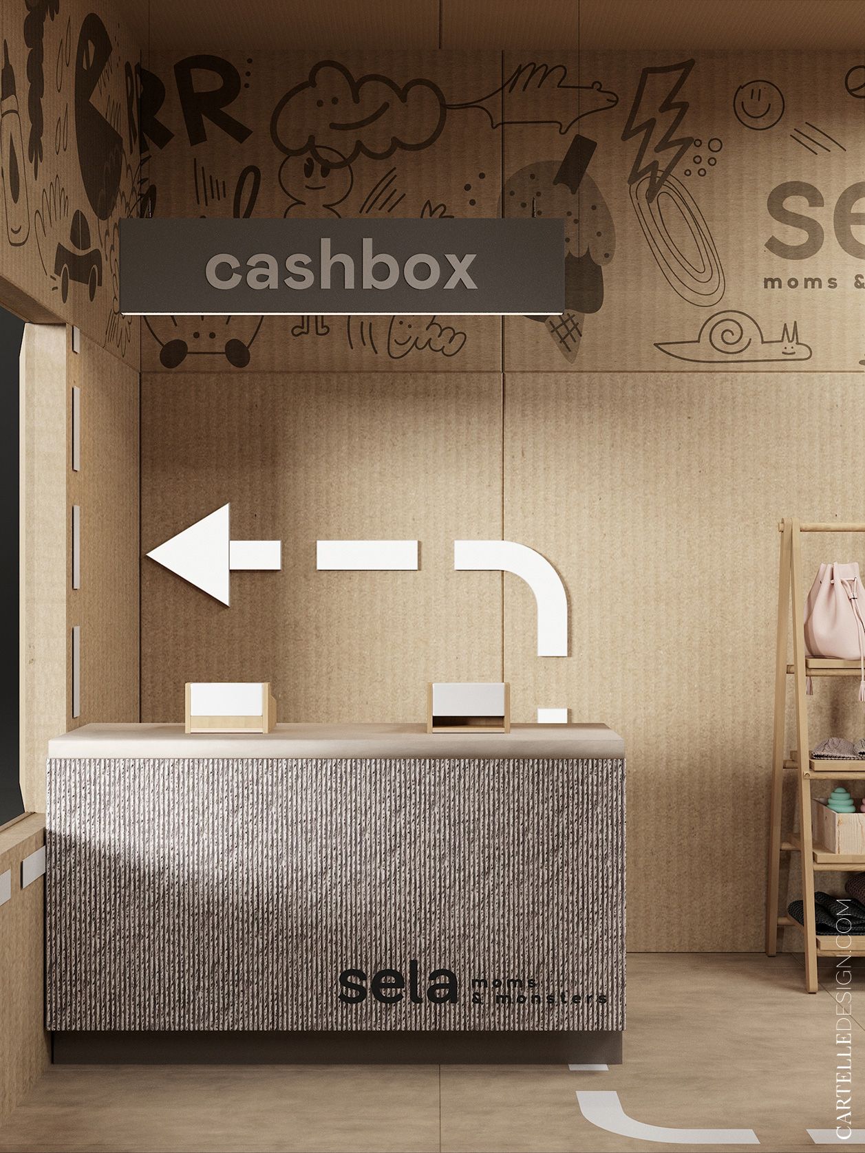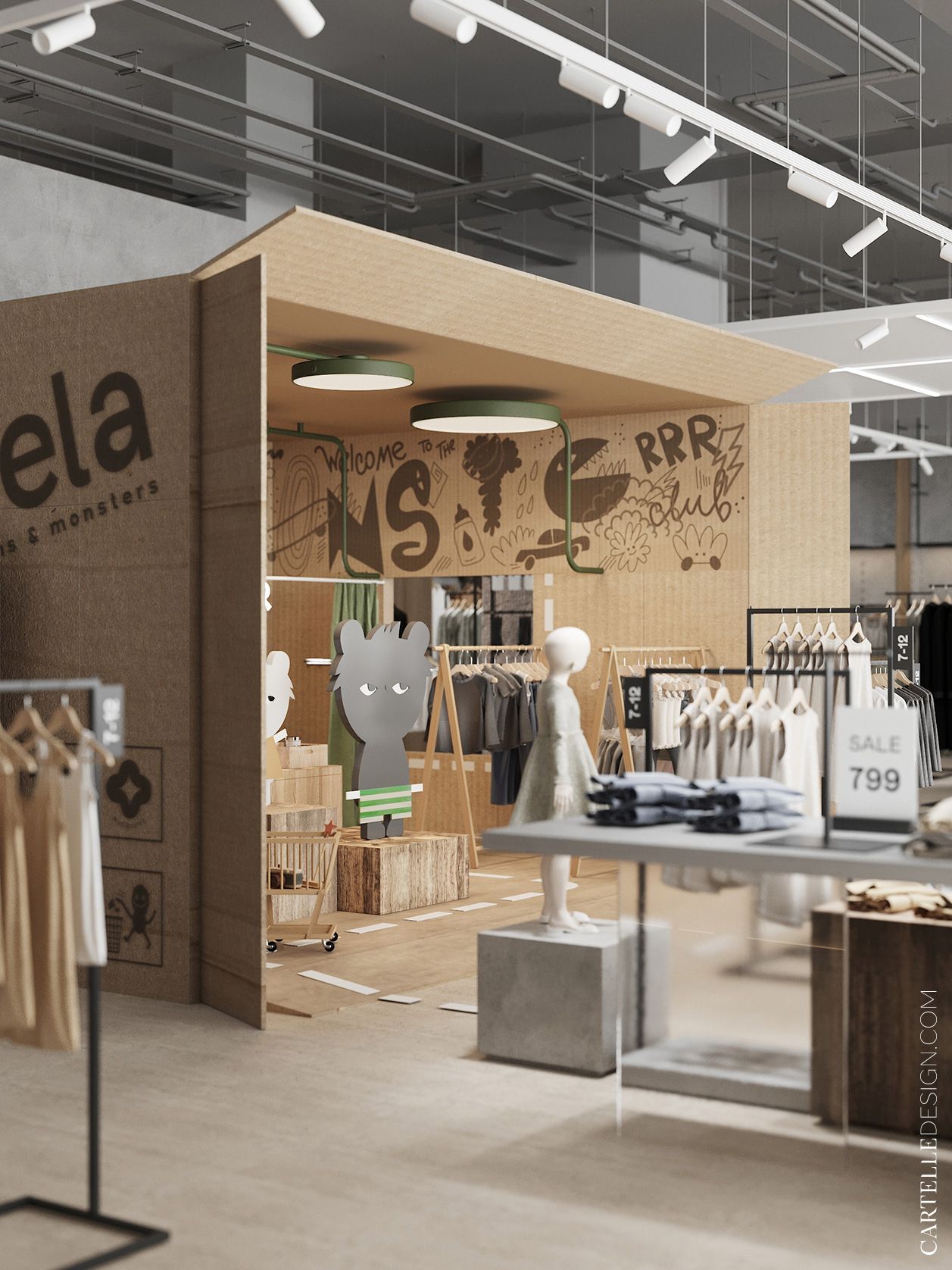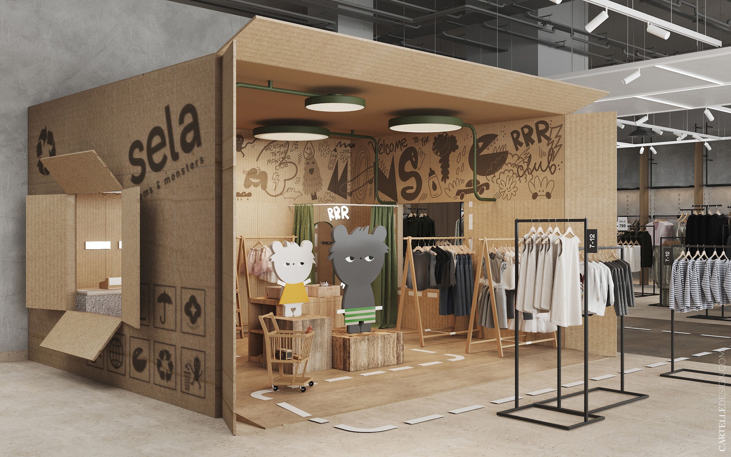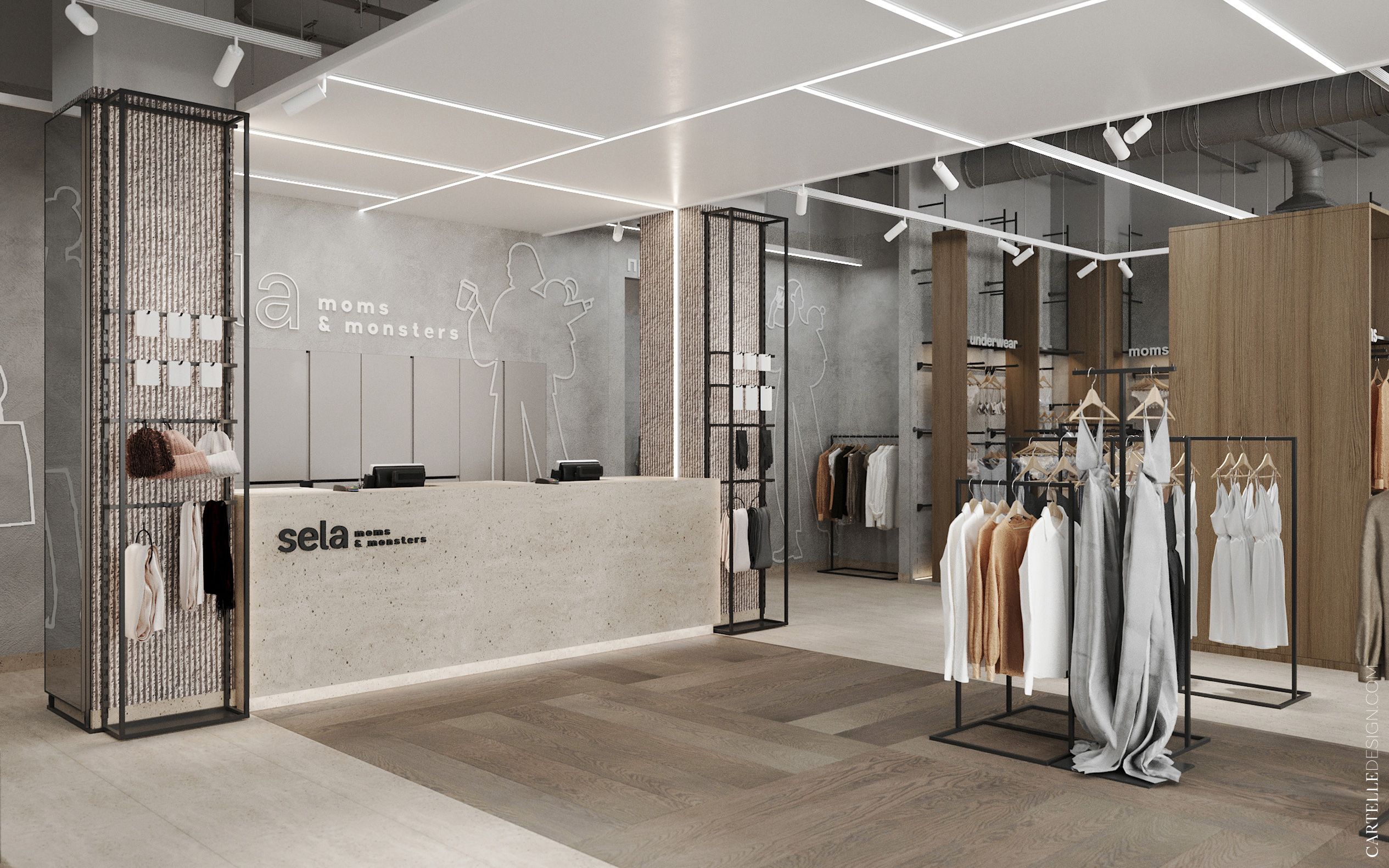 Новая концепция магазинов Sela представляет собой идею создания стильного пространства для модных мам и детей. Просторный светлый стильный интерьер с хорошей навигацией по зонам для покупок и отдельная игровая зона.