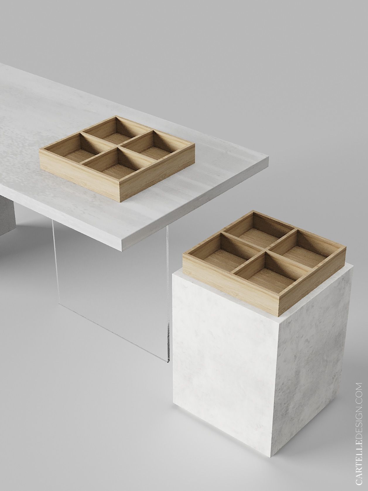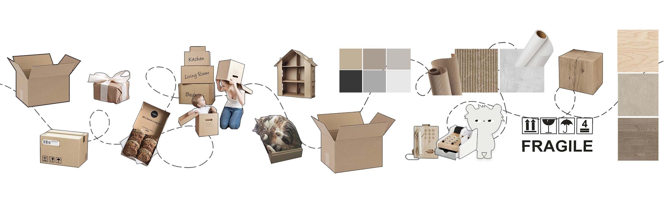 Идея коробки, как пространства для игровой зоны, отталкивается от нескольких ассоциаций. Во первых, коробка как приятное напоминание связанное с покупками, посылками, подарками. Коробка как место укрытия, убежище, место где можно спрятаться. И, коробка как место, куда можно поместить своих маленьких монстров и забыть о них на какое-то время.
