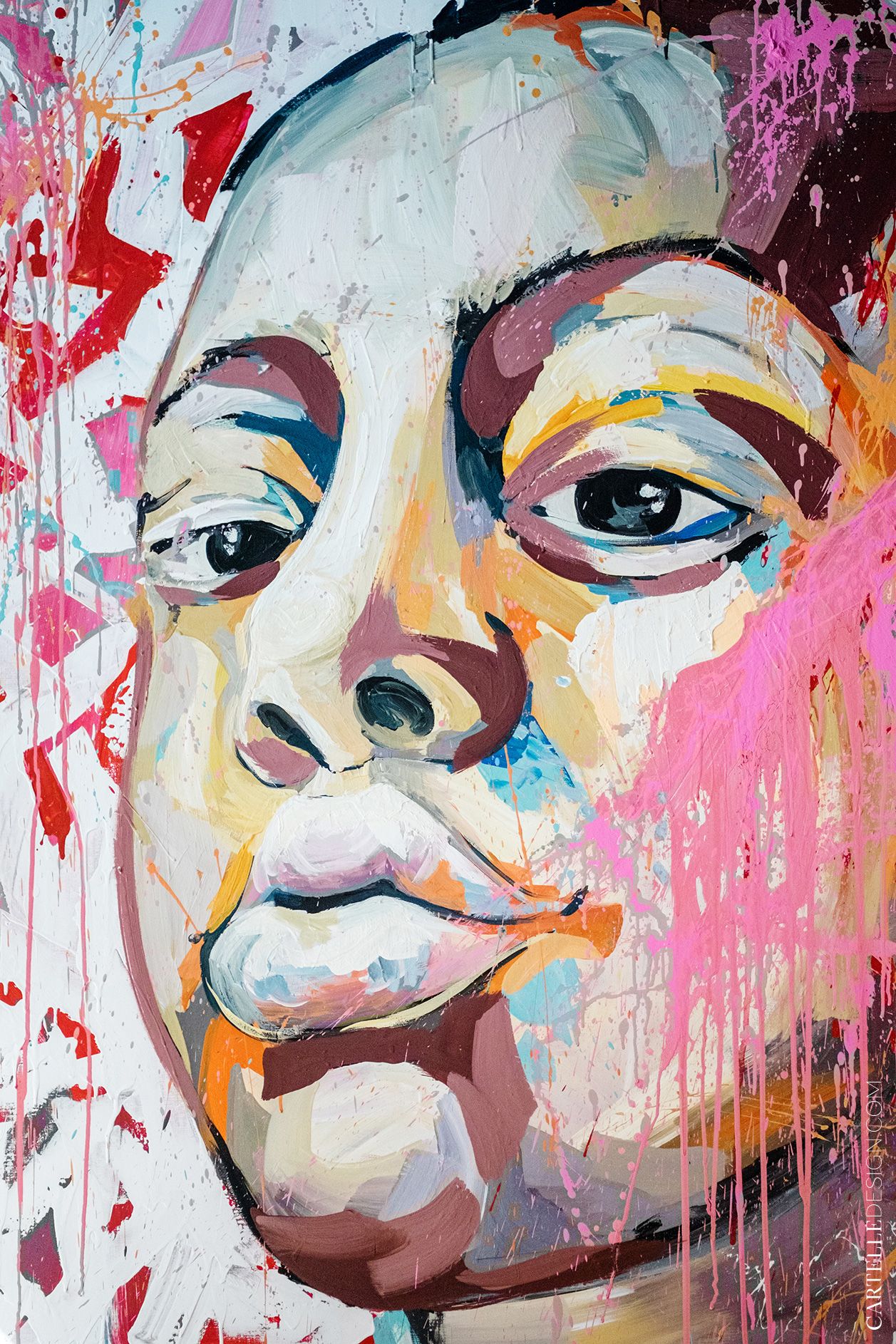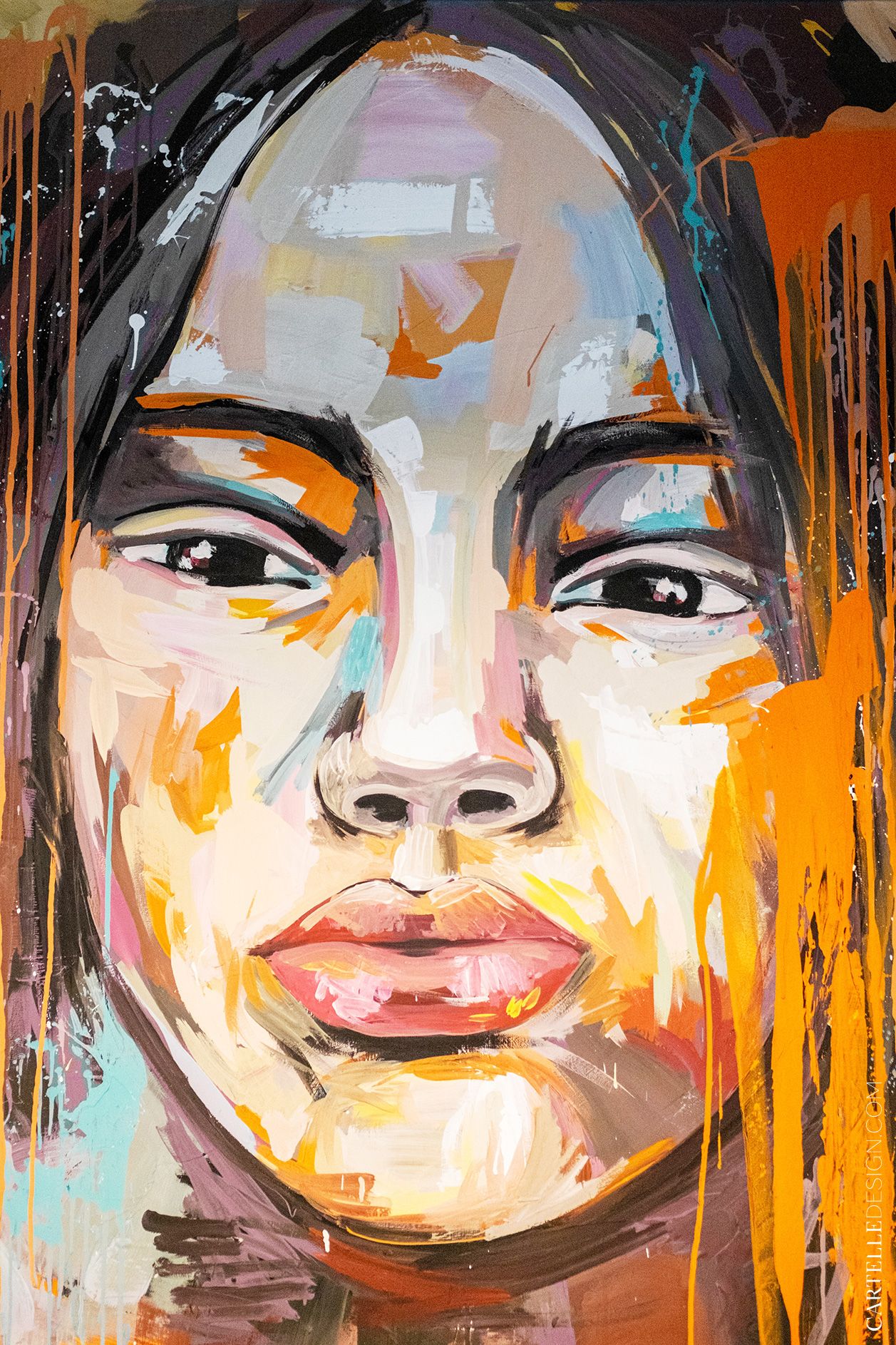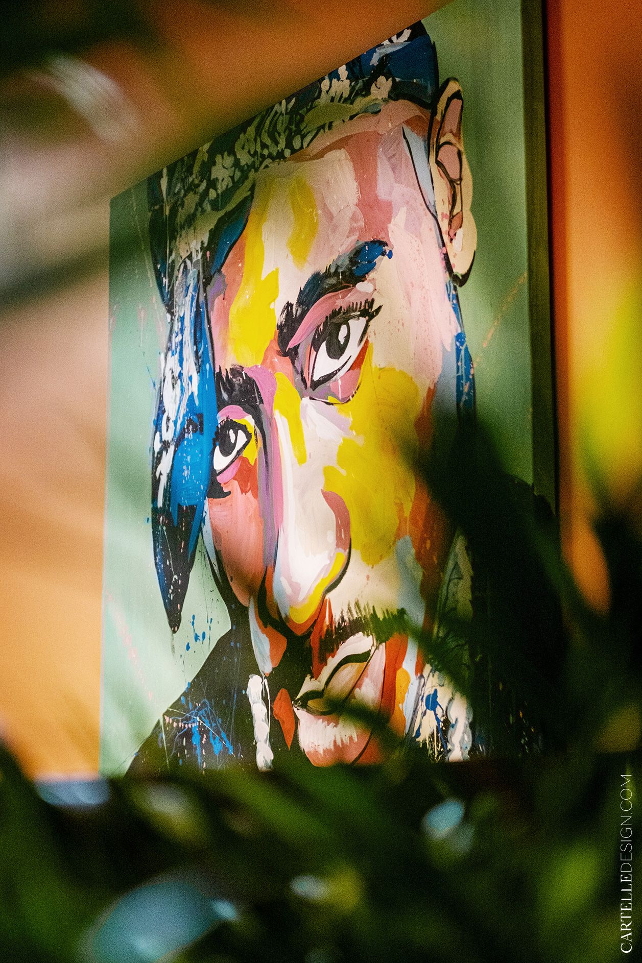 В интерьере много ярких картин, граффити, постеров и навигации. Картины и граффити заказали у художницы Анастасии Малиновской. Мы заранее обговорили тему и цвета изображений.