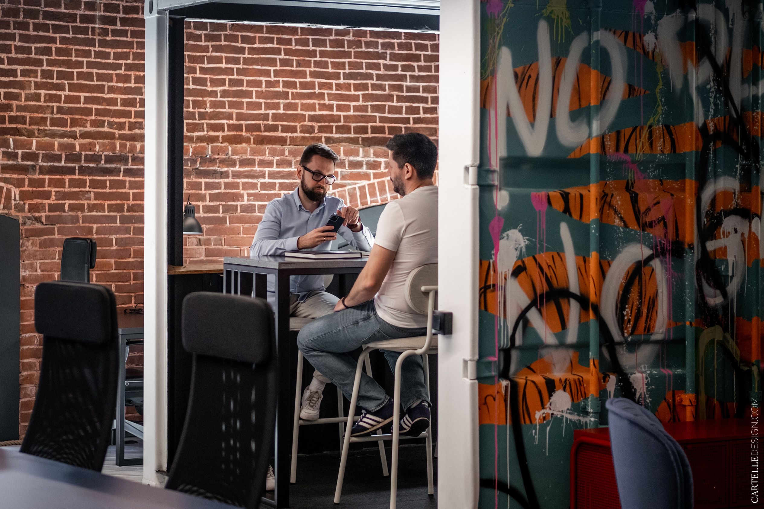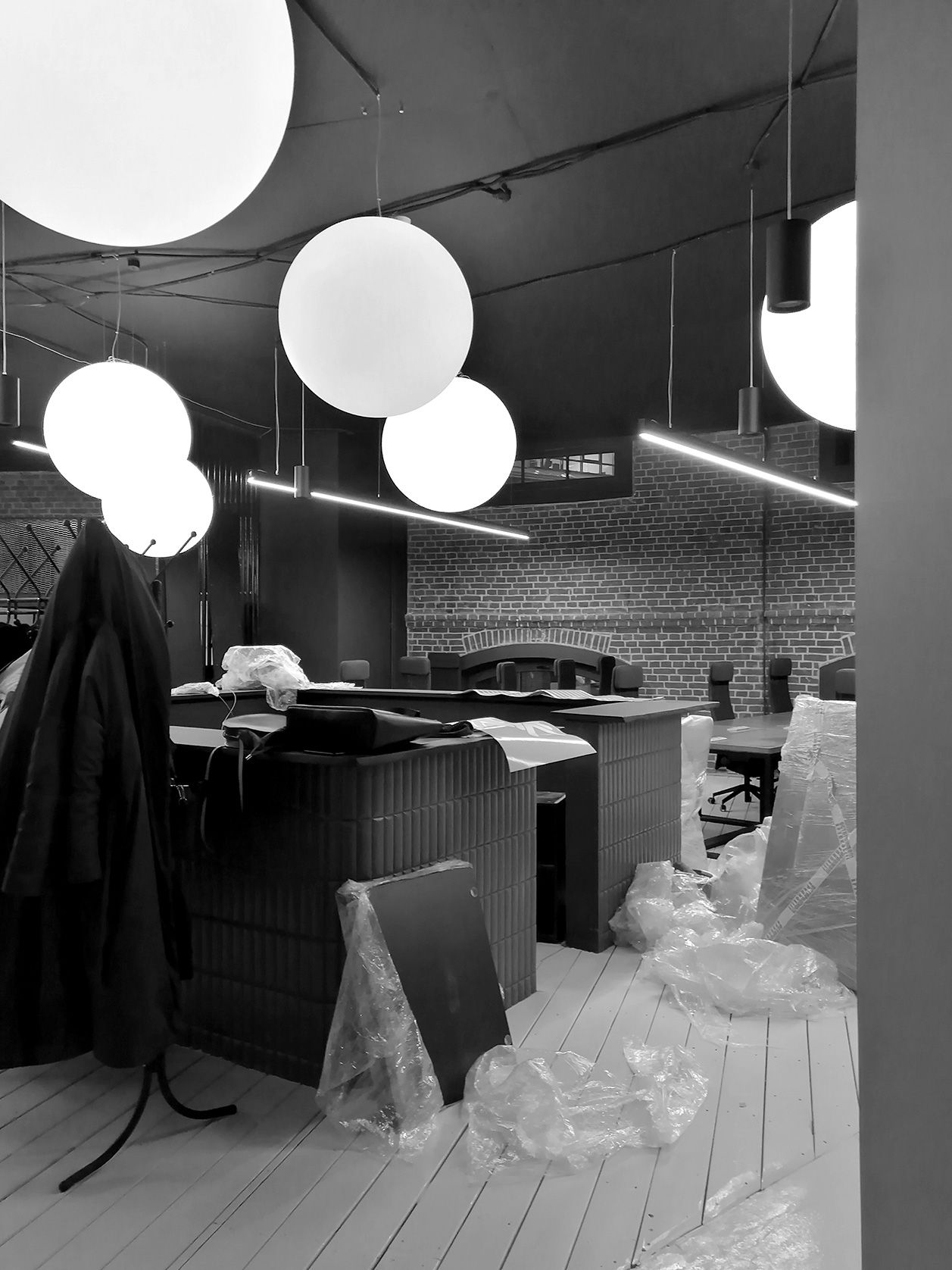 Перед нами стояла задача создать комфортное помещение для работы с минимальными вложениями и в сжатые сроки. Ребятам понравилась атмосфера пространства, которая была создана предыдущем арендатором - хаотичная структура, яркие цвета и уютные уголки. И нам нужно было полностью переделать функционал помещения, сохранив при этом общее настроение интерьера.
